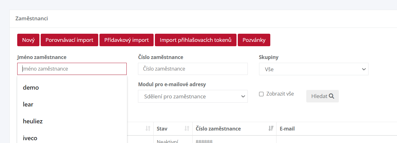 1. V menu klikneme na položku zaměstnanci.
