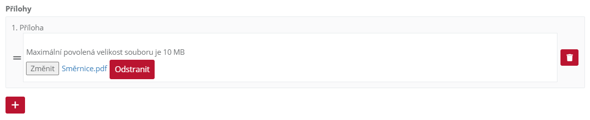 2.6 Je možné připnout PDF nebo obrázek pomocí "+" a soubor vyberete pomocí tlačítka "Změnit".