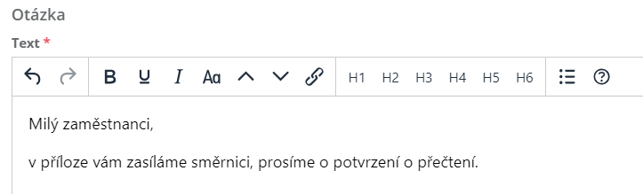 2.5 Vyplňte "text/oznámení o směrnici".
