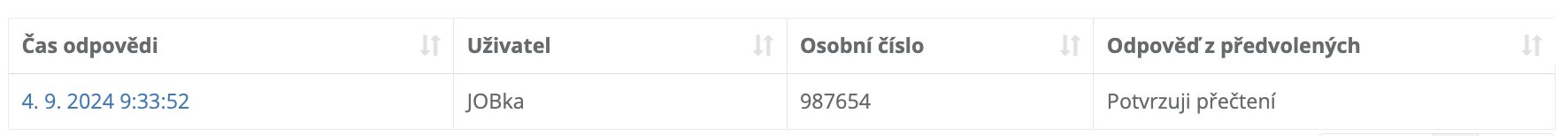Po publikaci lze sledovat jak zaměstnanci odpovídají.