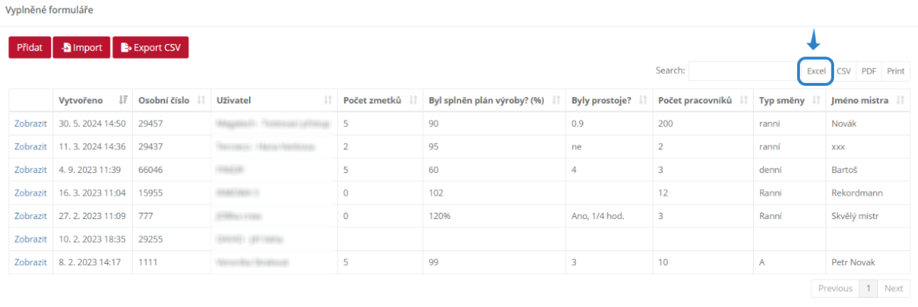 6. Můžete také exportovat všechna hlášení do excelové tabulky nebo do PDF souboru.