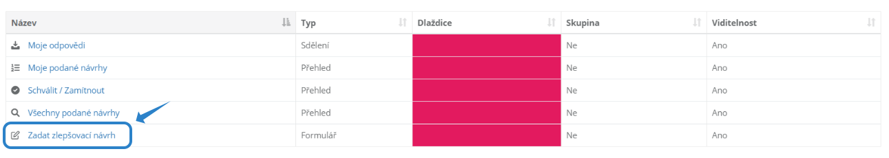 2. Klikněte na formulář s názvem "Zadat zlepšovací návrh".