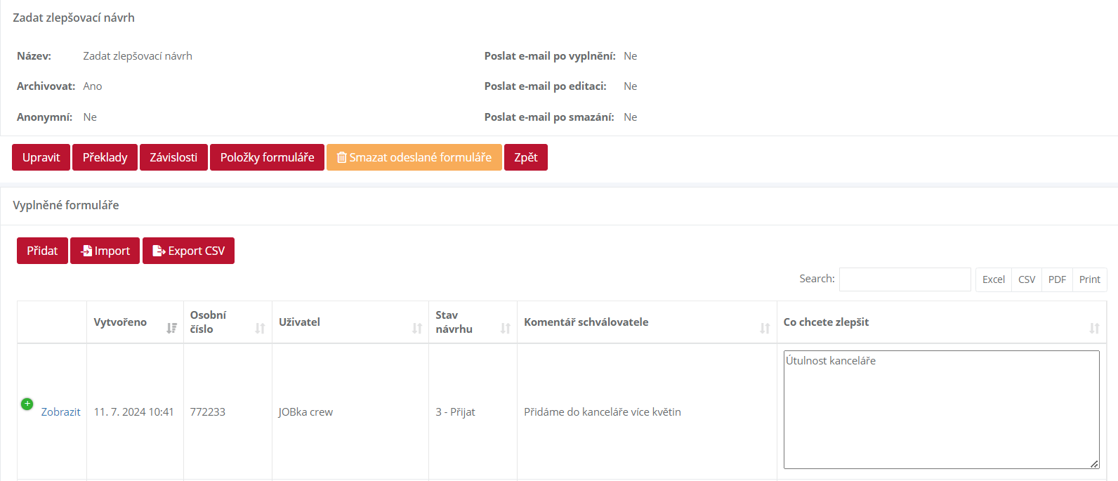 3. Zde vidíte všechny vyplněné formuláře od zaměstnanců