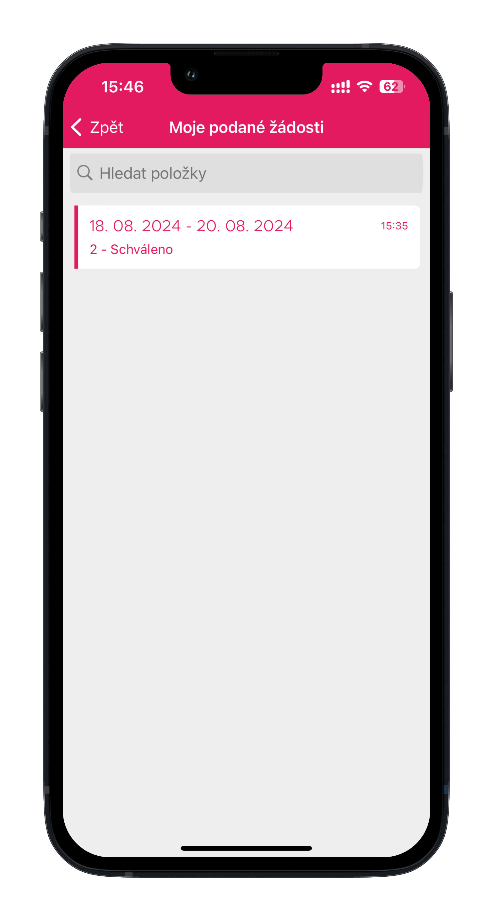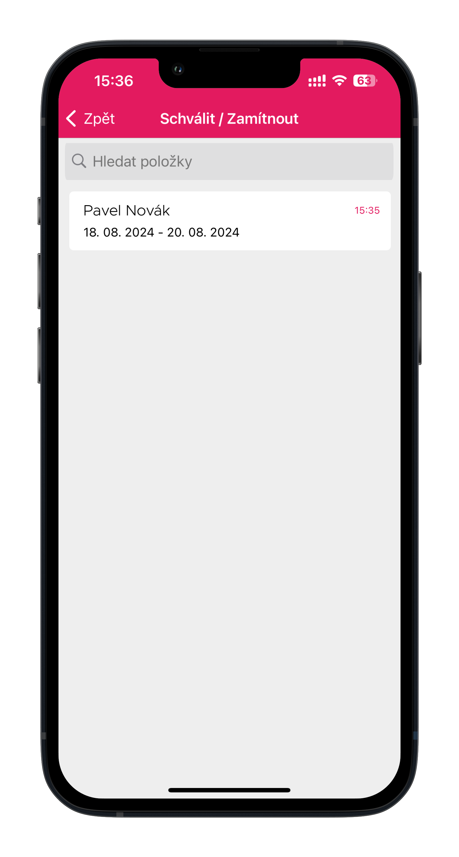 5. Po otevření se zobrazí žádost od zaměstnance/ů.