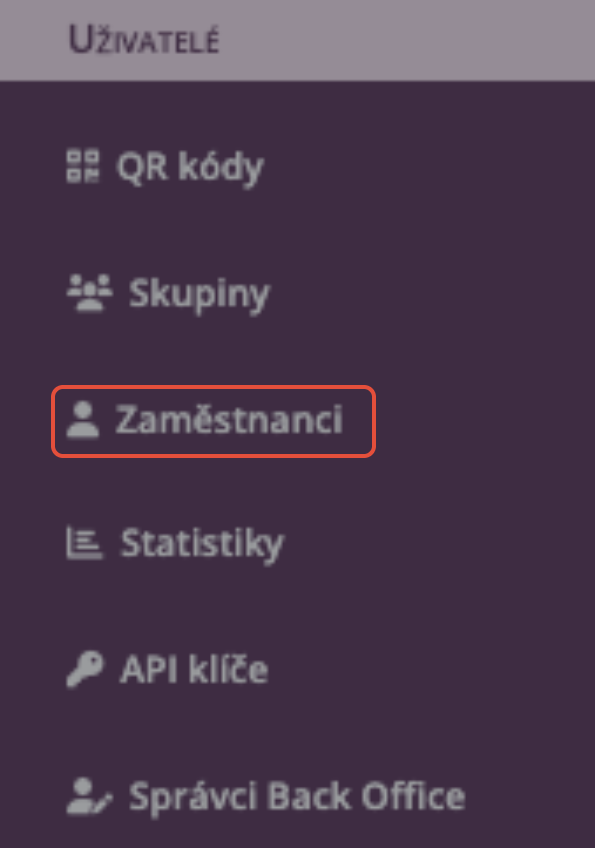 1. Ve webové administrace klikněte na sekci zaměstnanci