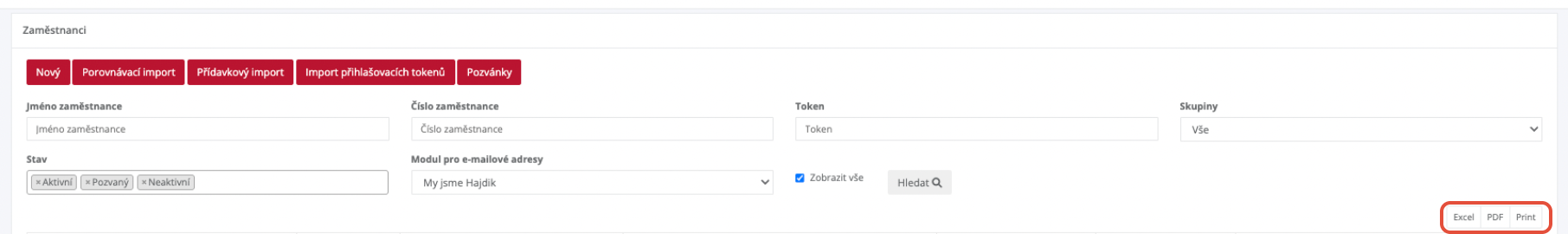 3. Stáhněte si zaměstnance do excelu či CSV souboru v pravé části obrazovky