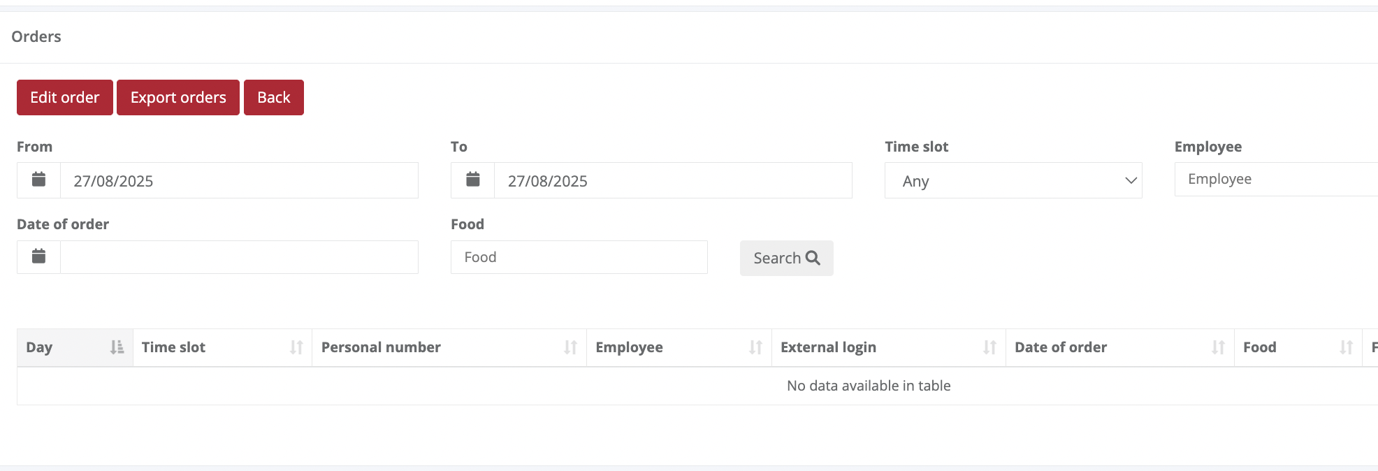 5.6. By clicking on "Export orders," you can export the meals ordered for the selected date.