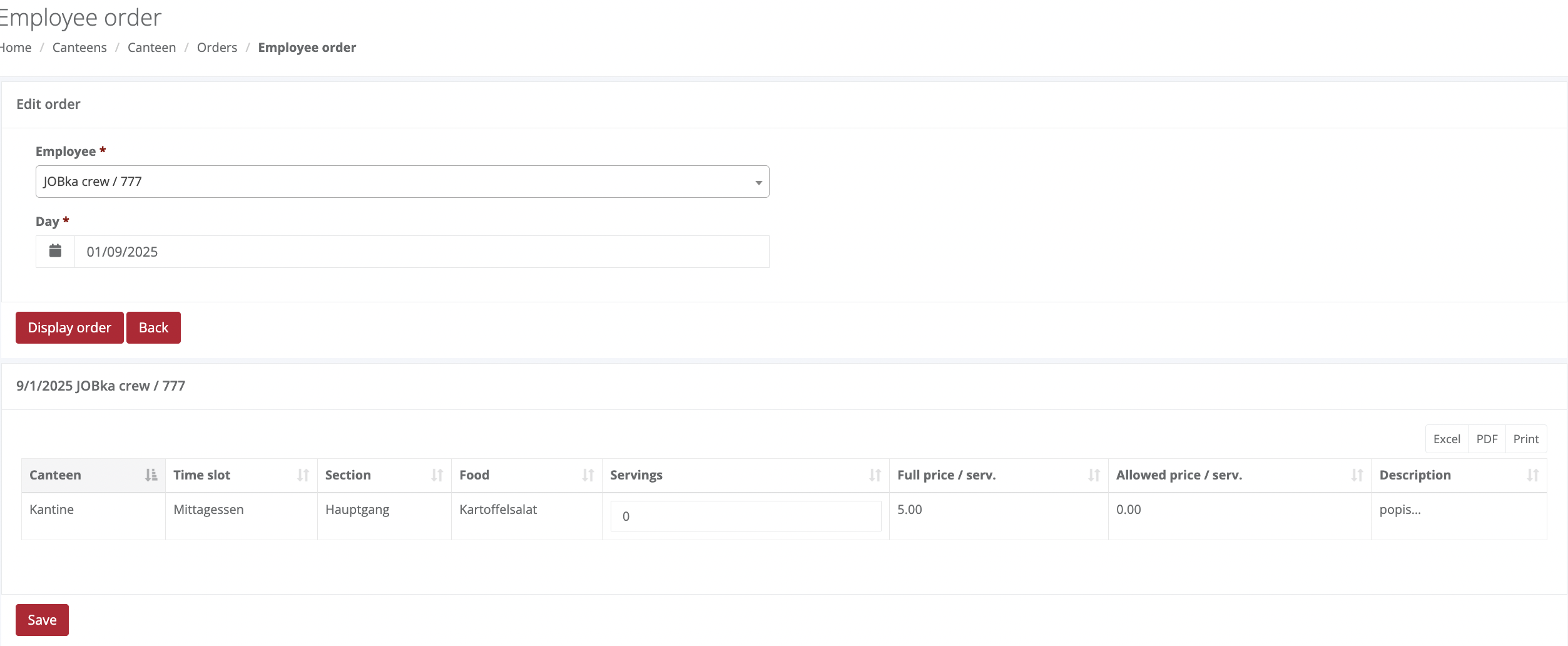 5.2. By selecting "Edit Order," you will display the menu for searching for employees and gain access to manual meal ordering.