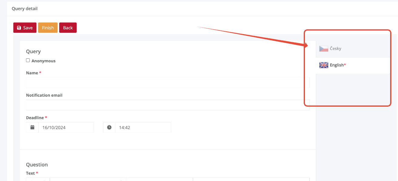 11. Translations can be added by clicking on the flag icon on the right side of the questionnaire.