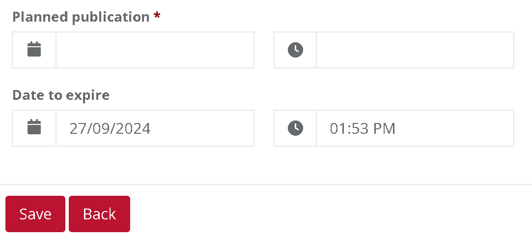The "Schedule" button allows you to schedule the publication date and expiration date.