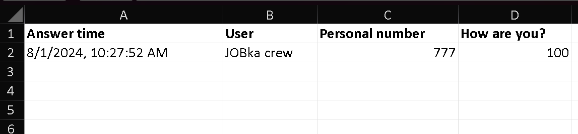 Personal Number: The personal number of the user who submitted the response. (You will see the personal number only if the survey is not anonymous.)