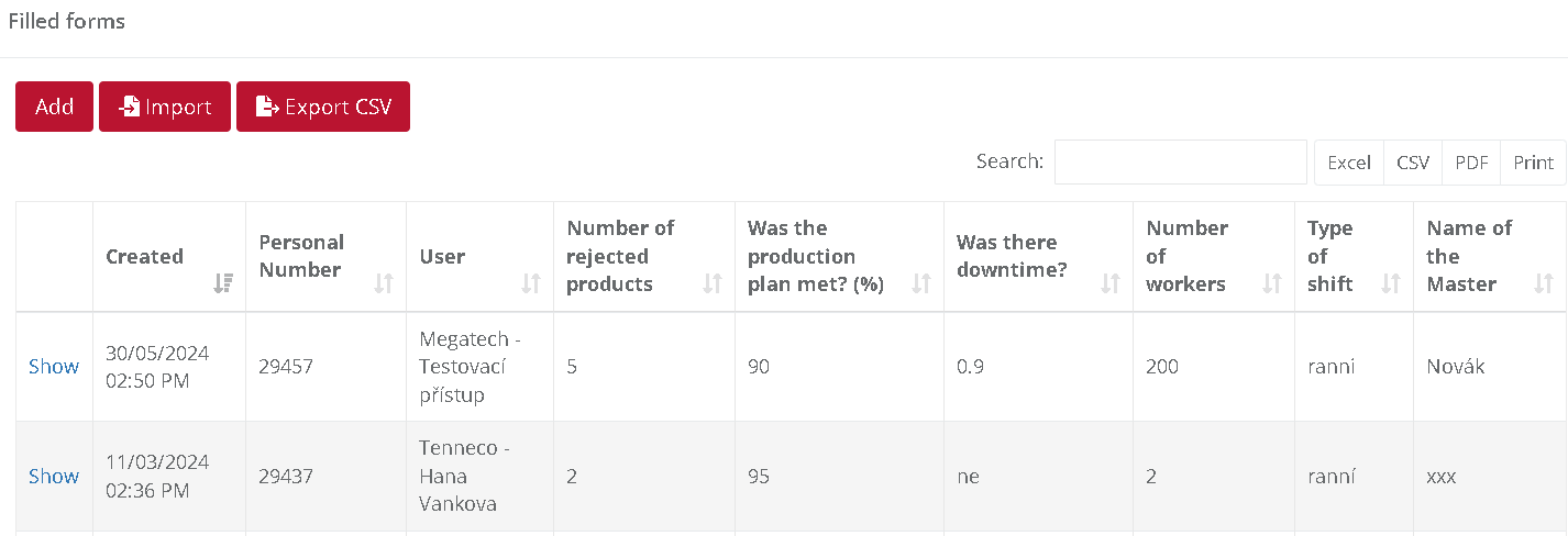 2. Then, all completed forms will be displayed, which you can filter using the search field.