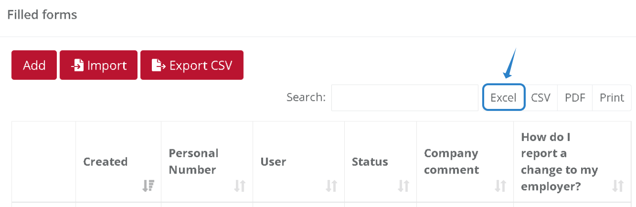7. If you plan to edit your spreadsheet and then upload the changes, please first save the Excel file using the "Export CSV" button. You can make any changes in the Excel file, but it is essential to keep the ID and Created columns filled out to ensure your changes are saved correctly.