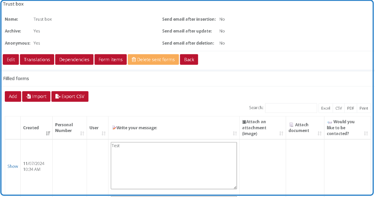 5. You can edit the form using the "Edit" button (e.g., by changing the text or adding a file/document with a maximum size of 10 MB).