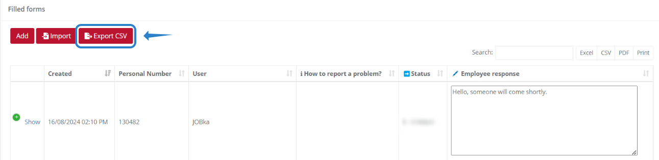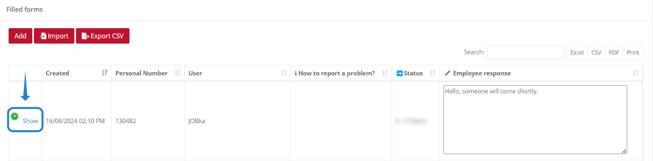 3. Here, you can view all the completed forms. To edit individual reports, click on the blue "Show" text.