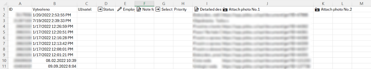 7. If you plan to edit your table and then upload the changes back, please first save the Excel spreadsheet using the "Export CSV" button. You can make any changes in the Excel spreadsheet, but it's essential that the ID and Created columns are filled out, as they ensure your changes are saved correctly.