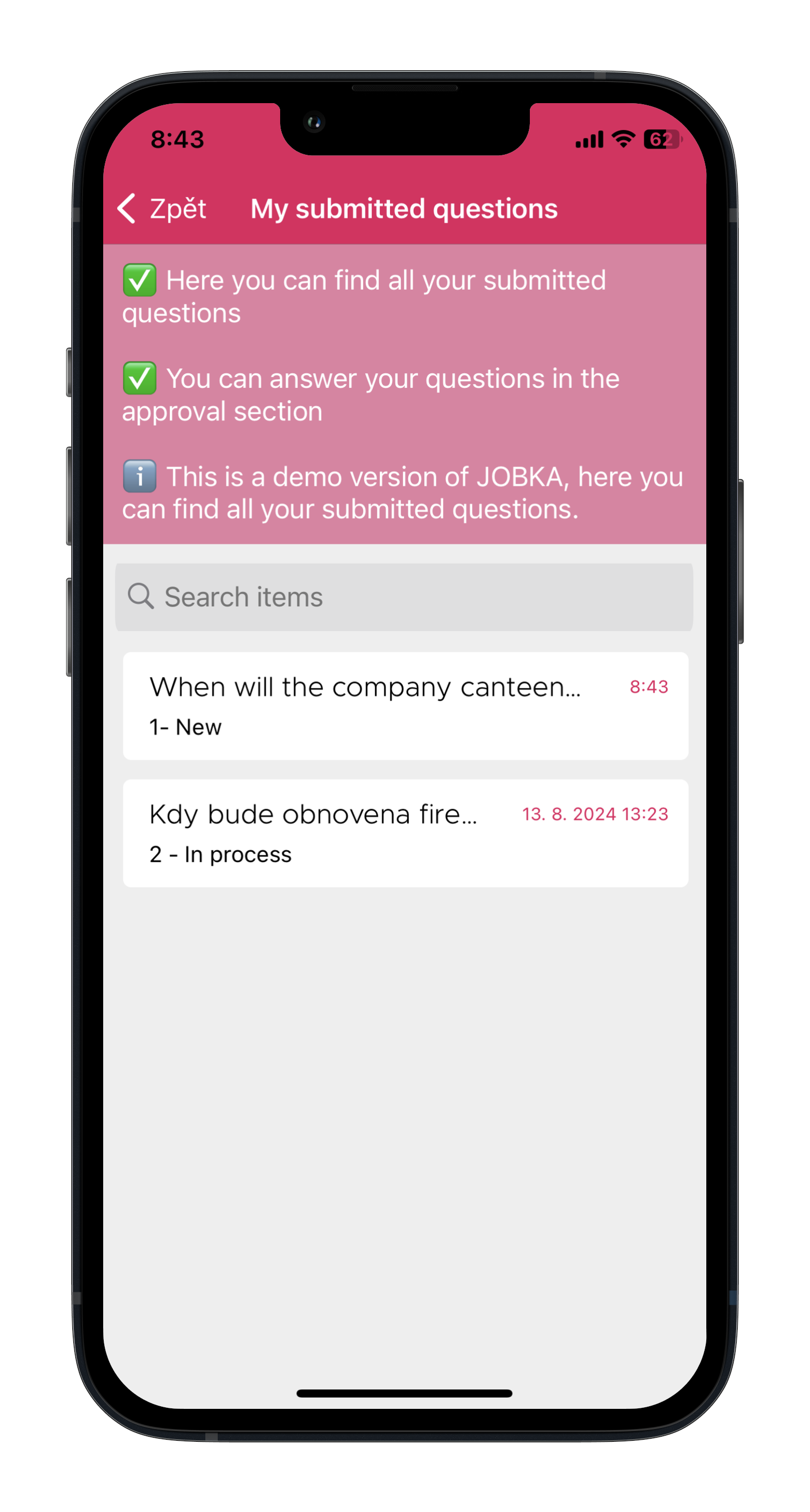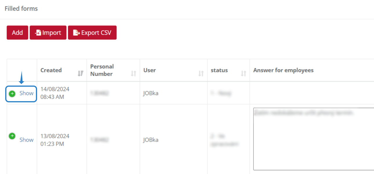 4. You can then change the status of the query and write your response to the employee. To send an answer to your employee, simply change the status value and fill the anaswer for employees field. If the form is in the state 1 - New, the message to your employee will not be send. Once everything is updated, click the "Update" button.