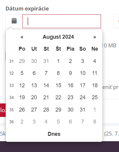 4. Na tejto stránke máte ďalšiu možnosť úpravy a tými sú "Dátum expirácie" a možnosť vloženia súboru napr. PDF, XLSX, DOCX, atď...
